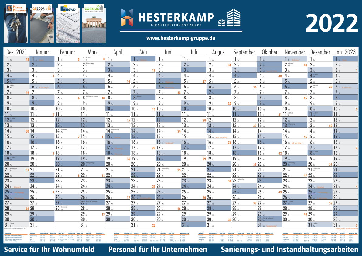 Wochenenden und Feiertage passend zu Ihrem Firmenlogo eingefärbt. Gerne erstellen wir Ihnen mehrere Varianten.
